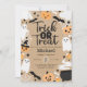 Celebre seu pequeno fantasma ou goblin com este adorável convite de aniversário de Trick ou Treat! Perfeito para uma festa temerária do Dia das Bruxas, este convite festivo apresenta elementos lúdicos do Dia das Bruxas como abóboras, fantasmas, milho doce, teias de aranha e muito mais — tudo em um estilo bonito e amigável para crianças.