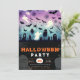 Prepare-se para uma celebração do Dia das Bruxas que é assustadora e divertida com este convite de festas atraente! A metade superior do design apresenta uma mistura alegre e estranha de fantasmas voadores brancos e pretos, colocados contra um fundo azul e roxo vibrante. Esta cena espectral é ainda reforçada por um cemitério com cruzes e gravadores, assim como teias de aranha, morcegos e árvores estéreis, criando um equilíbrio perfeito de diversão e medo. A metade inferior do convite contrasta com um fundo preto elegante, apresentando morcegos de cinza, teias de aranha detalhadas e marcadores de sepultura preliminares. Os detalhes da festa são destacados em cor laranja brilhante e branco nítido, com a data exibida de forma destacada, dentro de uma abóbora branca esbranquiçada, enfeitada com números laranja impressionantes. Voltar ao convite revela as costas, que continua o tema do Halloween com um pano de fundo preto coberto por uma série de morcegos de cinza, fantasmas maliciosos, valas assustadoras, jack-o-lanternas brilhantes, teias intricadas, árvores caprichosas e crânios. Este design coeso garante uma vibração festiva e assustadora de todos os ângulos. Com a sua moderna e divertida reviravolta nas imagens clássicas do Dia das Bruxas, este convite está certo de estabelecer o clima para uma memorável e excitante festa do Dia das Bruxas. A sua design única é perfeita para levar os seus hóspedes ao espírito do Dia das Bruxas!