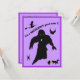 Este convite é a maneira de começar os feriados. Silhuettes de todas as figuras sombrias de Halloween. Um fantasma escuro, bruxa, morcego, gatos e aranha. Um bom momento. Tudo isso num fundo roxo. Foi adicionada uma borda roxa. As costas podem ser personalizadas com todas as informações sobre o seu partido.