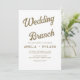 Elevem seu brunch de casamento com este sorvete elegante e convite de ouro. Apresentando uma design de bolso moderna, apresenta um arranjo caprichoso de flores, folhas e botânicos desenhados à mão de folha de ouro falso, num fundo de creme suave. Personalize o verso com o nome do convidado de honra e os detalhes do evento para um toque pessoal. Perfeito para uma celebração sofisticada e na moda.