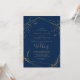 Este marinho floral azul e cartão de convite para casamento dourado é perfeito para um casamento elegante. A design do boho moderno apresenta um arranjo caprichoso de folhas desenhadas, folhas e botânicos, feitas com folhas falsas em folha de ouro, sobre fundo azul marinho. Nota: Este design não apresenta folha de ouro real. É um gráfico de alta qualidade feito para se parecer com folhas de ouro.
