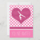 Verificado o convite de festas de ginástica com uma rosa claro e um design branco. Um grande coração cor-de-rosa tem um dentro de silhueta de ginasta! Use os campos de texto personalizados para adicionar as informações da sua parte. Use o botão "personalizar" para obter mais opções (inclusive diferentes fontes e cores!) ©gollygirls.com