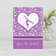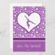 Poderoso convite de festas de ginástica floral roxo. Na parte de trás está um roxo rico coberto de adoráveis flores brancas. Há também uma silhueta de ginasta em um grande coração branco. Adicione seu próprio texto antes de fazer o pedido! Além disso, use o botão "personalizar" para alterar as fontes e as cores! ©gollygirls.com