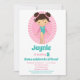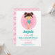 Um ginasta de mortalha giro, cor-de-rosa e turquesa, para este adorável e doce convite de aniversário.