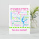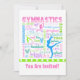 Convite de festas de tipografia de ginástica com cores lindas e brilhantes! Termos e frases de ginástica como, "espete, balde, salto, passe desmoronante", e mais preencha este fazer de convite perfeito para um aniversário de ginástica ou qualquer outra festa ou evento! Use os campos de texto para preencher as informações de sua parte. Além disso, use o botão "personalizar" para obter mais opções (incluindo fontes diferentes!) ©gollygirls.com