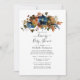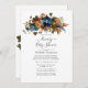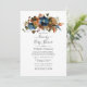 Trendy watercolor floral conduz através de um convite para noivas ou chás de fraldas em acentos de gengibre - laranja castanho e marinho de indigo azul.