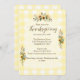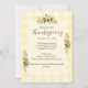 Os girassóis ouros amarelos em gingham amarelo claro trazem um belo charme country para estes convites de Ação de Graças. O padrão amarelo claro de gingham faz esses convites florais de Ação de Graças se sentirem frescos e vivos. A tipografia do na moda faz sobressair a palavra "Ação de Graças", enquanto há um modelo legível para todas as suas informações importantes. No fundo deste convite, mais girassóis de outono florescem num adorável arranjo botânico de outono.