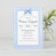 Gingham de cor azul-aquosa, doce e leve, com design de arco. Personalize este convite de chá de fraldas neutro entre raparigas/rapazes/homens com os seus próprios nomes, endereço, data e registro.