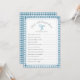 Perguntas editáveis sobre o título do jogo e texto para o chá de fraldas ou chá de panela. Apresenta um arco pintado manualmente com o quadro azul denim e o backer da xadrez gingham.
