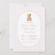 Convite para Chá de fraldas de Urso Gingham Rosa