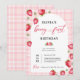 Pink Gingham Berry First Strawberry primeiro aniversario Convite