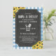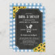 Convites Gingham Blue Chalk Sunflower Boy Baby-Q Chá