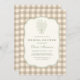 Elegant beige and ivory gingham bridal shower invitation featuring a soft floral bow design. Created for brides who love classic charm with a modern neutral palette. Ideal for bridal showers, brunch celebrations, garden parties, and elegant pre wedding events. Editable text. Clean print-ready layout.