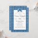 Gingham de cor azul-d'água, marinho escuro, bonito, com design arco. Personalize este convite de chá de fraldas neutro entre raparigas/rapazes/homens com os seus próprios nomes, endereço, data e registro.
