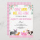 Convites Gingham-Pink-Animais de Criação Raparigas Aniversá