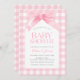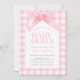 Convites Gingham rosa bonito com Chá de fraldas Arco