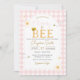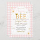 Convites Gingham Rosa Disies Abelhas Chás de fraldas A Sere