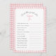 Perguntas editáveis sobre o título do jogo e texto para o chá de fraldas ou chá de panela. Apresenta um arco pintado manualmente com a estrutura e o backer da rosa claro de xadrez gingham.