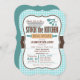 Cute Stock, o convite para chá de casamento de noiva da Cozinha em padrões marrom e aqua turquesa gingham. Apresenta pino de rolagem retrógrado, pinto misturador, faca e utensílios de cozinhar para copos medidores. Convide amigos para estocar a cozinha e a despensa da noiva com comidas e eletrodomésticos.