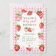 Convites Gingham Strawberry Berry Primeiro Aniversário