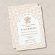 Celebrate your little one with this sweet and timeless “We Can Bearly Wait” baby shower invitation. Featuring a soft beige gingham background, adorable teddy bear illustration, and elegant arched layout, this design is perfect for gender-neutral, minimalist, and modern baby showers. Fully customizable with your event details, this invitation suits fall, spring, and neutral baby shower themes beautifully.