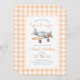 Gingham Time Flies Airplane Primeiro Convite de Aniversário