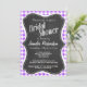 Convites Gingham Verificado Em Púrpura; Chalkboard Vintage