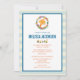 Um convite de chá de fraldas ilustrado com um dentro de girafa girápica, uma camada floral de cor d'água. Um trem de brinquedos no centro do convite. Colocado sobre um padrão listrado de cor azul pastel e creme.