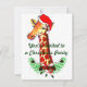 Uma girafa adorável com olhos grandes e um chapéu de Papai Noel fazem uma roupa de Natal de uma criança doce ou a vestem para celebrar a beleza no Natal.
