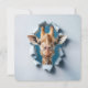 A cabeça de uma girafa surge brincalhosamente através de um pedaço de papel, criando um efeito 3D contra um fundo azul para uma festa de segundo aniversário. Todo o texto pode ser alterado.