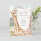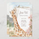 Adicione um adorável tema de safari personalizado à festa de aniversário ou chá de fraldas da sua garotinha ou rapaz com este convite de aniversário de girafa de aquarela bonito. O convite tem uma girafa em frente a uma savana africana. Há também flores e um lugar para o seu texto personalizado. Faz uma bonita adição personalizada a uma celebração!