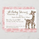 Convite para impressão de girafa rosa e castanha adorável com girafa branca e texto mutável.