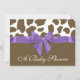 Manchas girafas divertidas e um grande arco roxo, um convite para chás de fraldas de meninas com texto personalizável. Todas as partes deste convite são impressas. Não há fita de verdade.