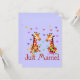 Duas girafas bonitinhas possuem buquês de flores enquanto corações em arco-íris as cercam. Igualmente adorável para um ensaio de casamento de gay ou hetero, cerimônia informal e recepção.