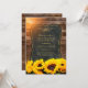 Convites Girasol 10º Aniversário de Casamento Rústico Outono. Personalizados para os detalhes da sua celebração. Você pode alterá-lo para aniversários de 15, 25, 30, 40, 50, 60 anos etc. Apresenta quadro-negro criativo, girassóis e tipografia em um fundo de madeira rústica. Ótimos convites de aniversário de casamento elegantes para aniversários rústicos no campo ou outros. Este convite de aniversário de casamento foi projetado por superdazzle.com