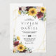 Girasol Rosas Borgonha Azul Rústico Quadro Moderno Geométrico Borgonha Neutro Convite de Casamento Floral