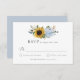 Placa RSVP de Casamento Russo de Flores Azuis Derramadas. Cartão de Resposta Floral Azul Dusty Floral Elegante de Script Moderno