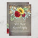 As luzes sonhadoras das cordas e as peônias de rosas vermelhas e girassóis decoram convites para festas de noivado rusticais