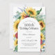 Um belíssimo design do 100º Convite de aniversário com elementos florais de aquarela vibrantes que incluem girassóis amarelos, rosas de burlagem, eucalipto e outros verdes mistos. A aparência é ensolarada e alegre e dá o tom para a sua celebração de aniversário em estilo encantador. Quer o seu evento seja dentro de casa, ou um churrasco ao ar livre, este convite é uma escolha perfeita. Um quadro arquivado de tendência ao redor do seu texto adiciona um toque de acabamento contemporâneo. Personalize o modelo de texto fácil de usar com os detalhes do evento. Se você precisar mover o texto ao redor, adicionar ou remover linhas de texto, selecione "clique para o cliente mais adiante", que abrirá o design para fazer alterações adicionais.