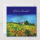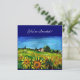 Paisagem da Toscana, colorida, vibrante, beleza expressiva da flora e campos de verão italianos em amarelo brilhante, laranja, verde, marrom, azul, belas flores, ciprestes e oliveiras, antiga casa de fazenda rústica sob o céu azul. Pintura acrílica sobre tela. Este convite fresco e artístico também é lindo para festa no jardim, chá de noiva, festas de feriado, reuniões de família, encontros, aniversário, formaturas, praticamente qualquer evento que você deseje.