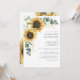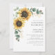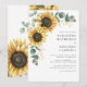 Convite De Casamento Eucalyptus Floral De Girassol. Crie um cartão de convite para o casamento Floral de Girassol moderno com este modelo bonitinho com um belo buquê floral rústico, com tipografia moderna. DICA: Cartões de suíte de casamento iguais, como RSVP, programas de casamento, banners, tapeçarias, etiquetas de presentes, placas e outras pegadas de casamento e guloseimas estão disponíveis na coleção abaixo com esta design.