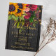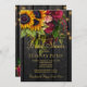 Modelo de na moda de convite para chá de panela de campo russo sobre madeira marrom-escura apresentando grandes girassóis de ouro amarelo e buquês vermelho-burgundy, cordas de luzes cintilantes e um falso roteiro de tipografia de ouro. +++++++++++++++++ Fácil de personalizar com seus detalhes! Você pode personalizá-lo alterando ainda mais as fontes e as cores das letras. +++++++++++ O convite é adequado para festas de jardim ao ar livre / quintal rústico de jardim / brunch / barbecue bridal.
