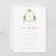 Floral White Hydrangea Sunflower Crest Monograma Salvar Convite para Casamento de Data. Convite Russo De Casamento. Flores White Hydrangea Greenery Casamento Monograma Crest Salvar o Cartão de Data