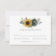 Placa RSVP de Casamento Russo com Flores Marinhos Azuis. Cartão de Resposta Floral Azul Pó-Sol Elegante. Pacote de Convite para Casamento Rustic Barn