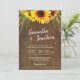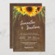 Este convite floral rústico apresenta um gráfico elegante de aquarela de girassóis e verdes que aparece no topo. O fundo é madeira de celeiro e os nomes aparecem no texto de estilo manuscrito de moda.