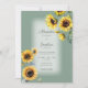 Seu dia de casamento é uma celebração do amor, alegria e a beleza dos tesouros do ouro da natureza. Este convite para o casamento mostra o charme radiante dos girassóis num fundo verde de sábio rústico desbotado, criando um convite que incorpora calor, felicidade e elegância casual.