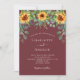 Um fundo tinto de vinho, cor de marrom, decorado com girassóis, eucalipto verde. Personalize e adicione seus nomes e detalhes da festa.