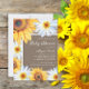 Girassóis amarelos e castanhos russos e margaridas brancas com lindas folhas verdes no convite de chá de fraldas de menina chamado burlap. Perfeito para as comemorações do verão ou do outono. Entre em contato comigo para obter assistência com a personalização ou para solicitar produtos correspondentes