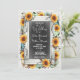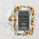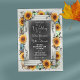 Os convites de casamento rústicos perfeitos para a temporada de outono! Madeira de celeiro desgastada e quadro-negro são acentuados por girassóis festivos e abóboras de colheita em estilo aquarela. Tema de casamento especial e único para datas de casamento em outubro e novembro.