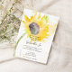 Convide os convidados para uma festa de verão ou outono antes do casamento honrando a noiva para estar com o elegante Girassol Amarelo no Chá de panela Branco da Água. Este clássico chá de casamento de flores personalizado convida a apresentar uma fotografia botânica pintada digitalmente de uma flor de girassol amarela num caule verde num vaso de vidro com fundo branco. Disponível como um convite impresso para envio por correio ou como um download digital para fácil compartilhamento digital online.